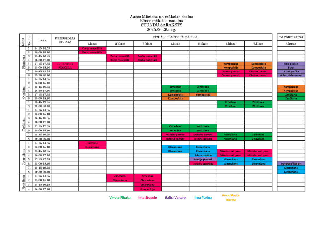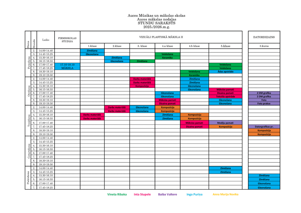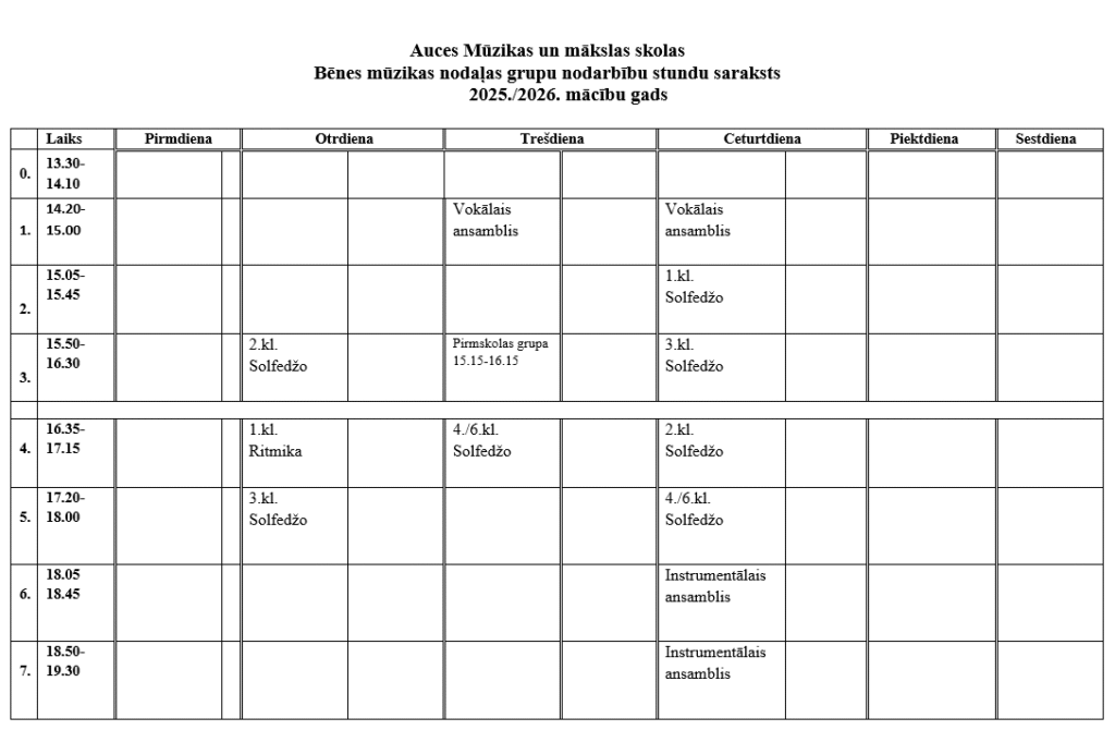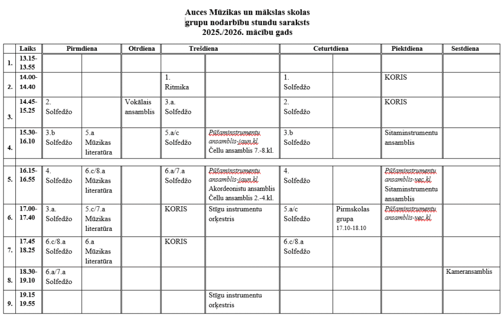Grupu nodarbību stundu saraksts 2025./2026. m.g.